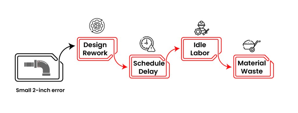 Schedule delays: The rework pushes your plumber back two days while they wait for revised spools. Your electrician, who was scheduled next, now sits idle or gets reassigned. You’ve just lost a week of sequencing.